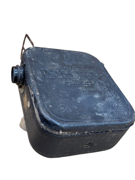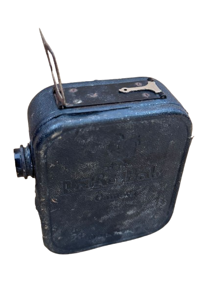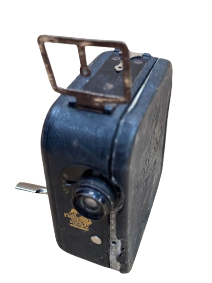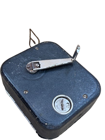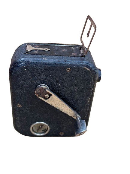 Cámara Pathè baby, de los años 20. Usa película de 9,5 mm. Con marcas del tiempo pero en buen estado.