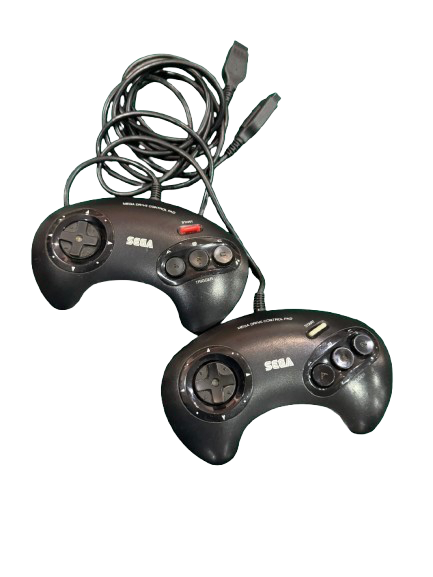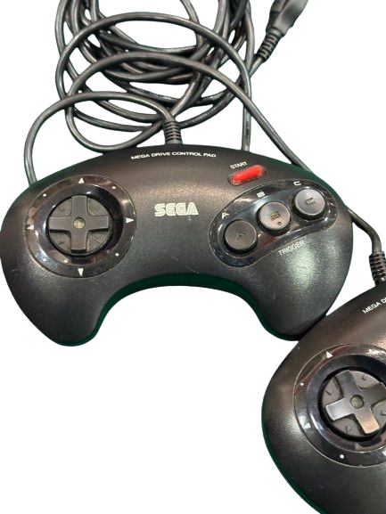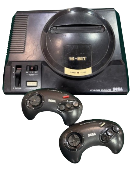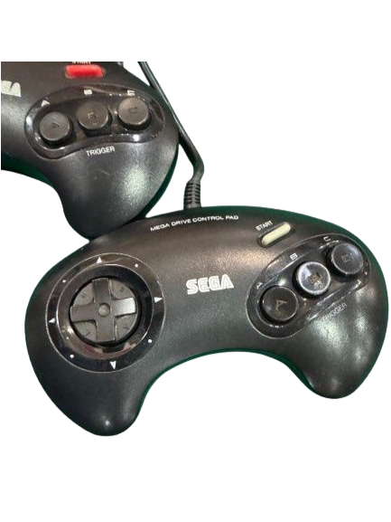 Consola Sega Mega Drive 16-Bit con mandos. Funciona correctamente, probada. No incluye cable de corriente.