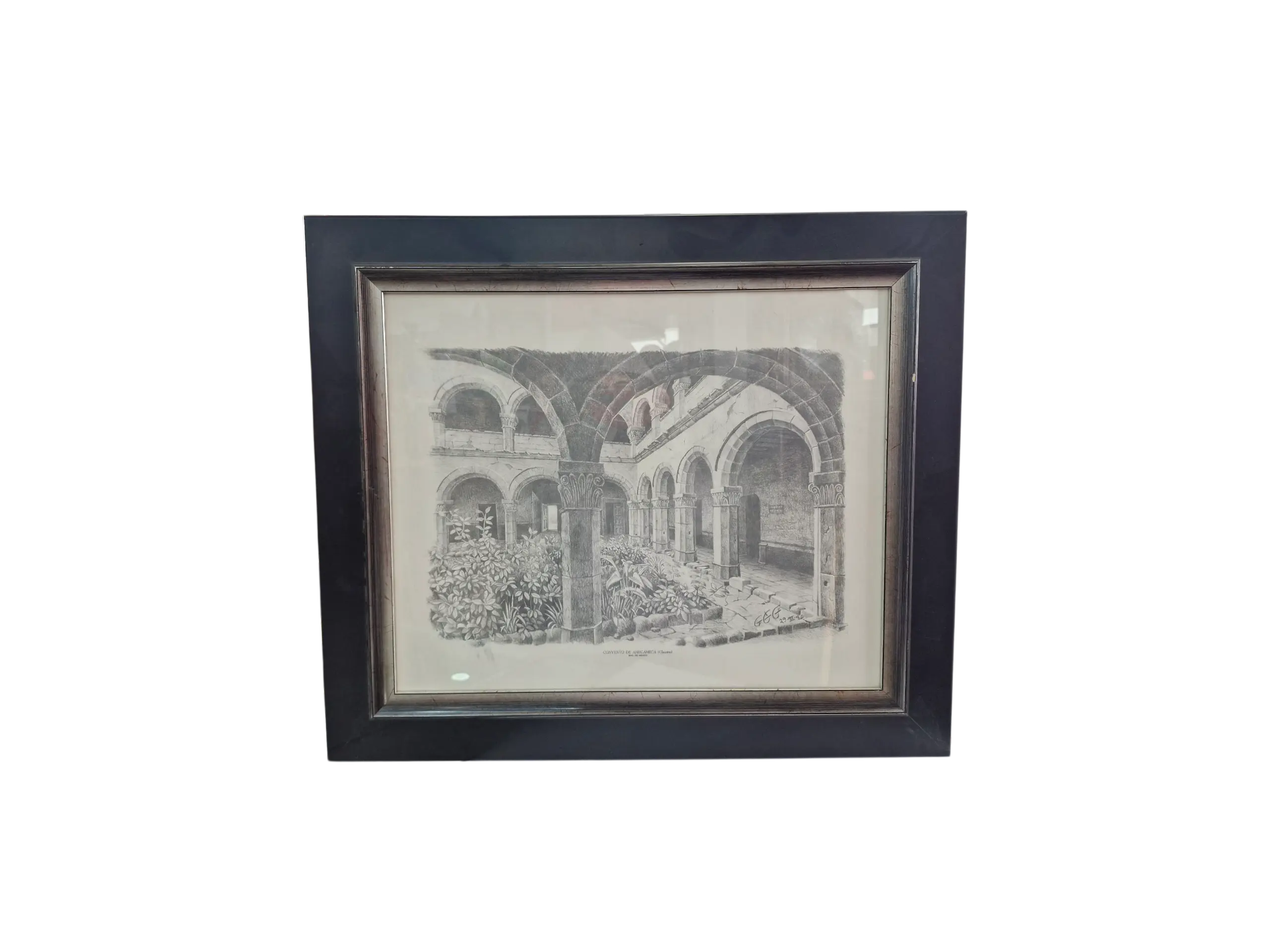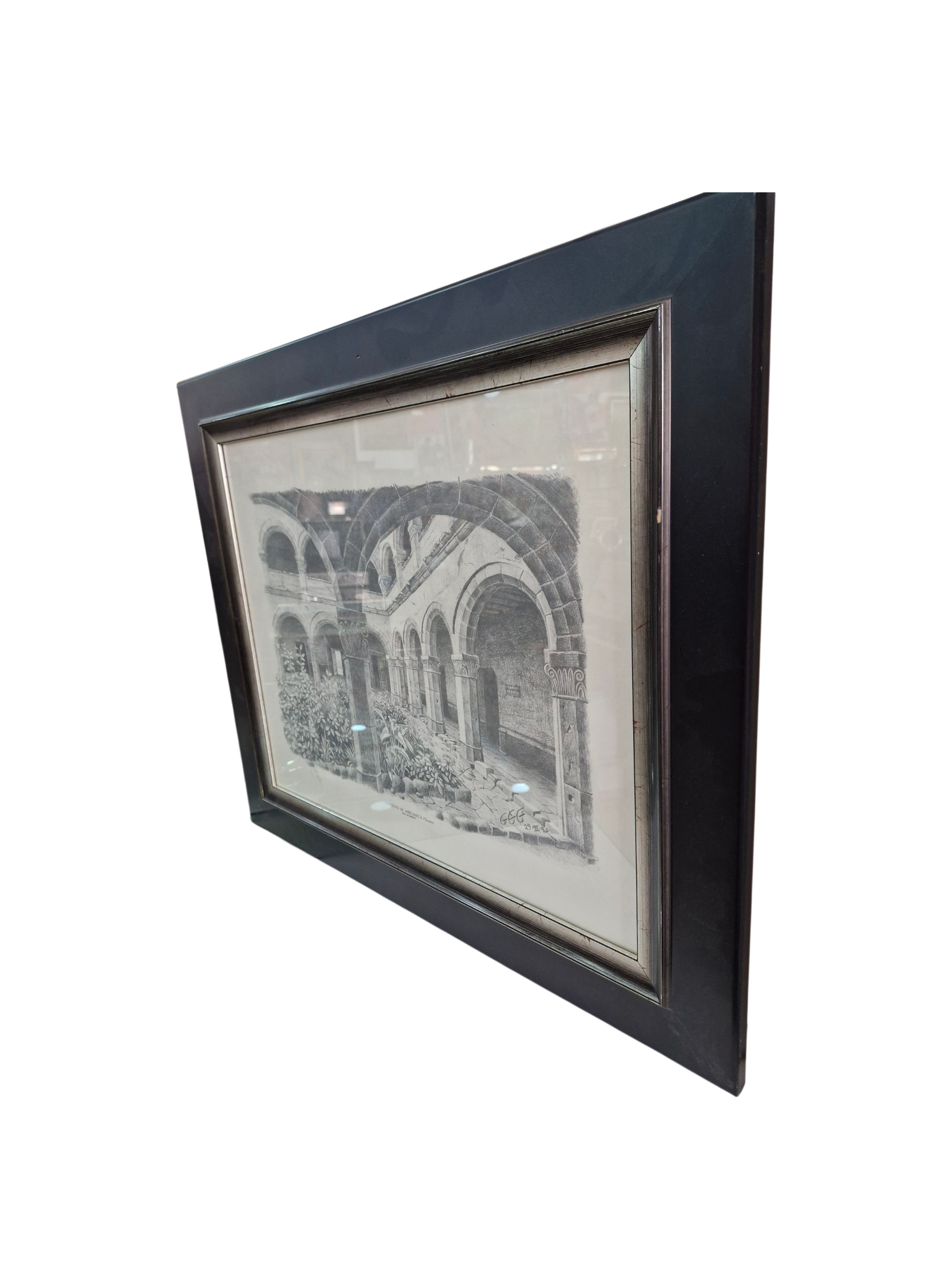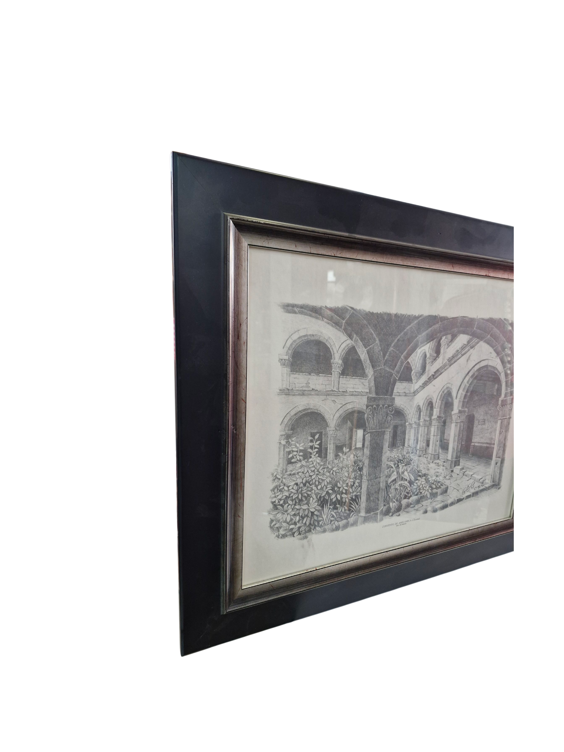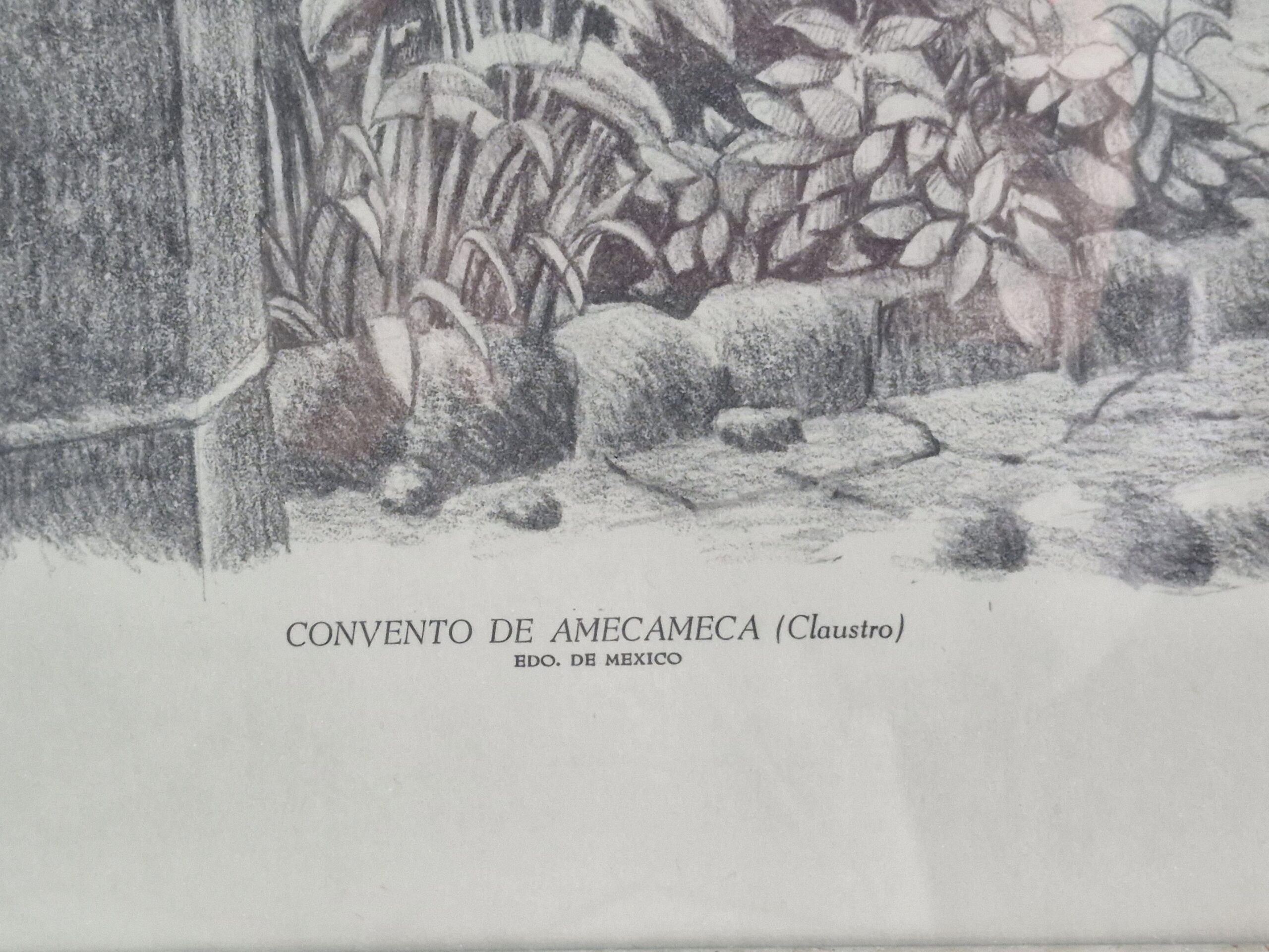 Dibujo enmarcado del Convento de Amecameca (Claustro)
