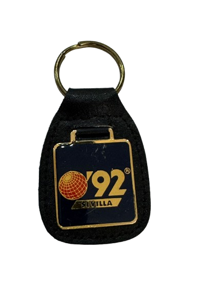 Celebra la historia con este elegante llavero en cuero negro, diseñado para conmemorar la icónica Exposición Universal de Sevilla de 1992. Su emblema metálico dorado resalta el logotipo original del evento, combinando estilo y memoria. Ideal para coleccionistas, nostálgicos y amantes del diseño vintage español.
