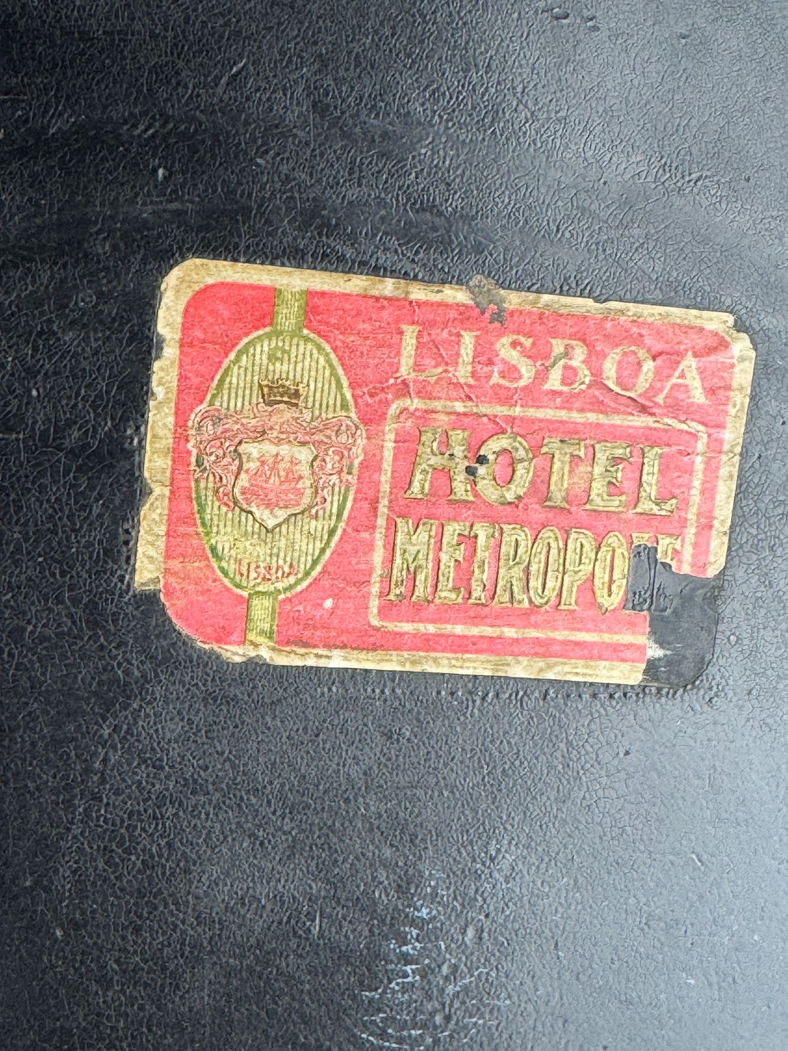 Esta exquisita maleta antigua evoca la elegancia de los viajes de principios del siglo XX. Fabricada en cuero negro reforzado, conserva intacta una emblemática etiqueta del histórico Hotel Metropole en Lisboa, lo que la convierte en una pieza única para coleccionistas. Presenta detalles de desgaste que realzan su autenticidad y carácter, perfecta para ambientaciones vintage, decoración temática o amantes del turismo clásico.
