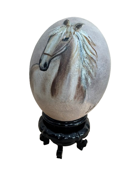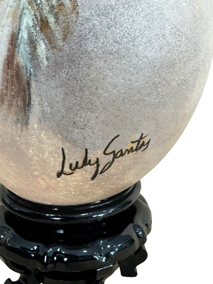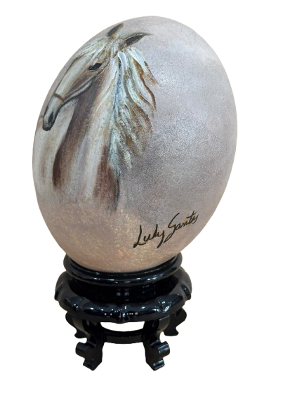 Pintura acrílica sobre huevo de avestruz decorado por la artista 2024.