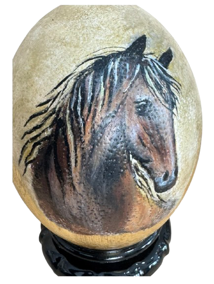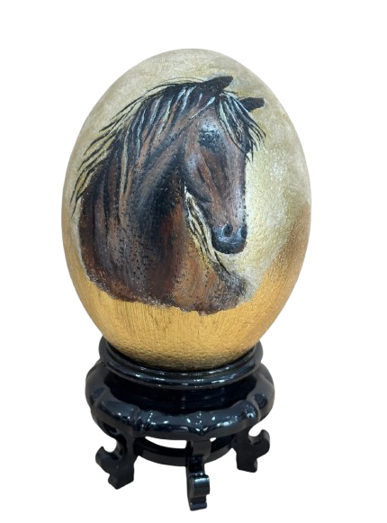 Pintura acrílica sobre huevo de avestruz