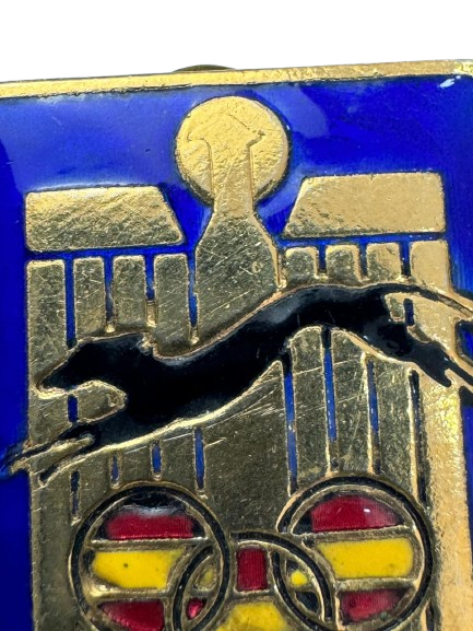 Pin distintivo de bronce por aptitud deportiva de la policia armada. Buen estado de conservación del bronce y de la pintura.