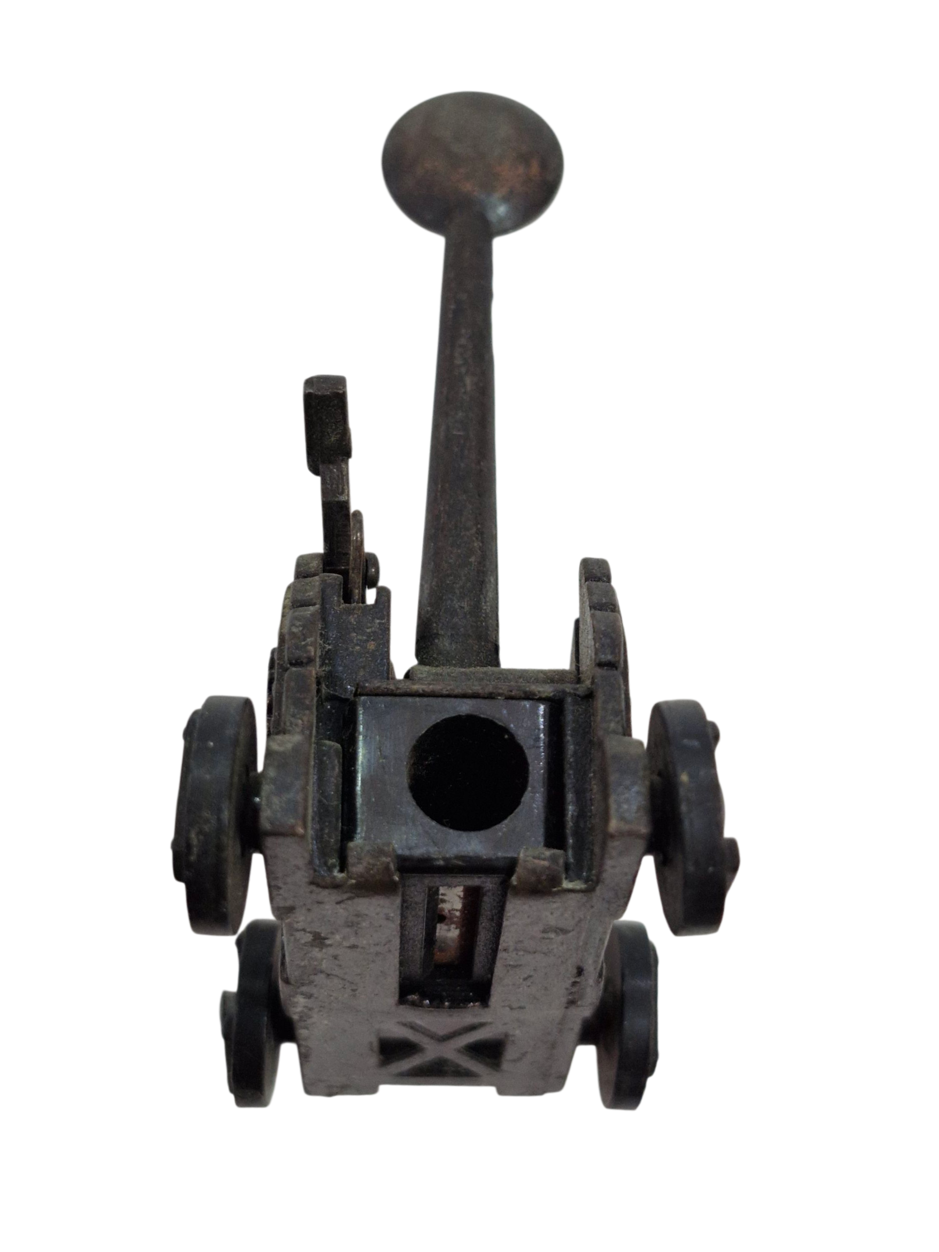 Este sacapuntas único combina funcionalidad y diseño decorativo en forma de tirachinas. Fabricado en metal, es ideal como accesorio de escritorio o para coleccionistas que buscan un toque vintage y original.